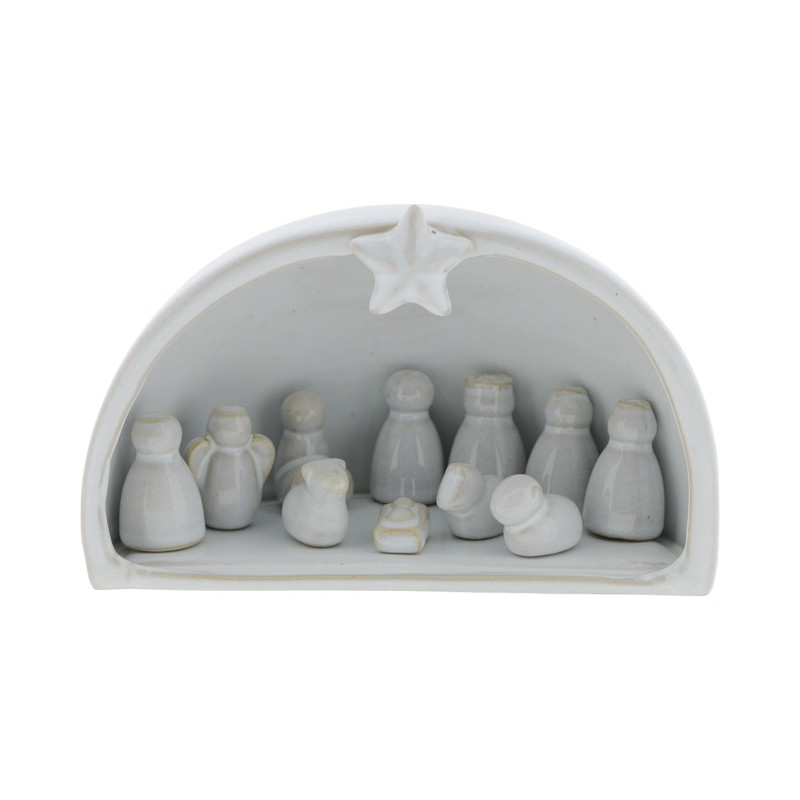 Dit mooie kerststalletje is stijlvol door zijn eenvoudig ontwerp. Het is 12 delig en licht grijs van kleur.