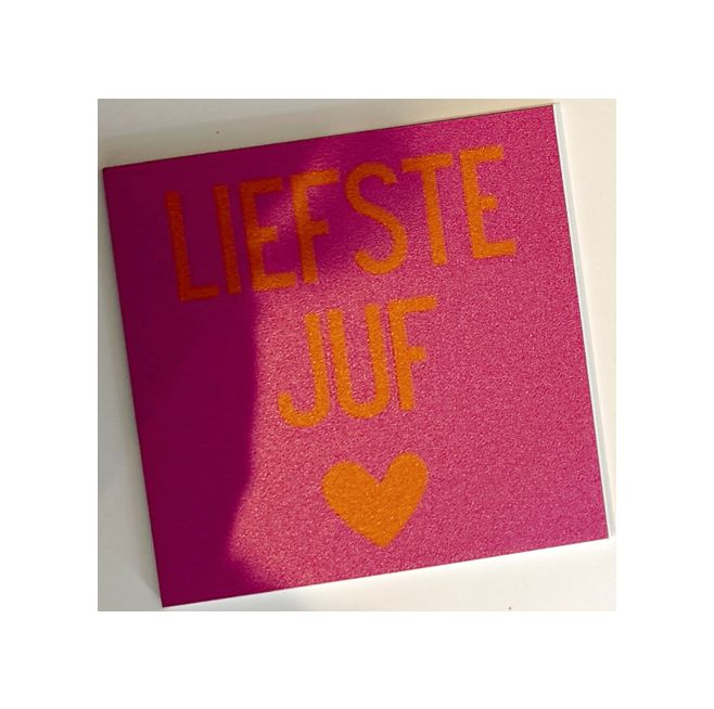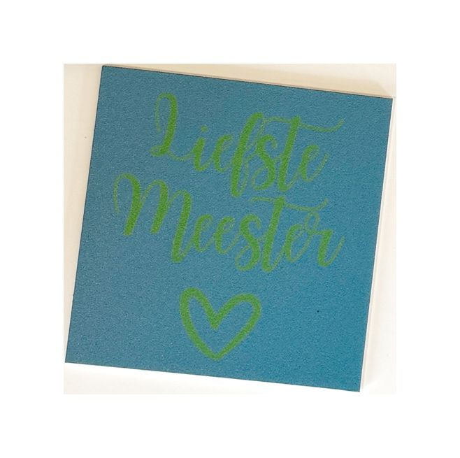 Forex tegeltje 10x10cm, 3mm dik. Leuk om neer te zetten of op de muur te plakken op een leuk plekje.